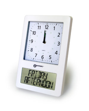 - Uhr mit digitalem Display (200×90 mm), 4 Darstellungsformate (ganz ausgeschrieben):