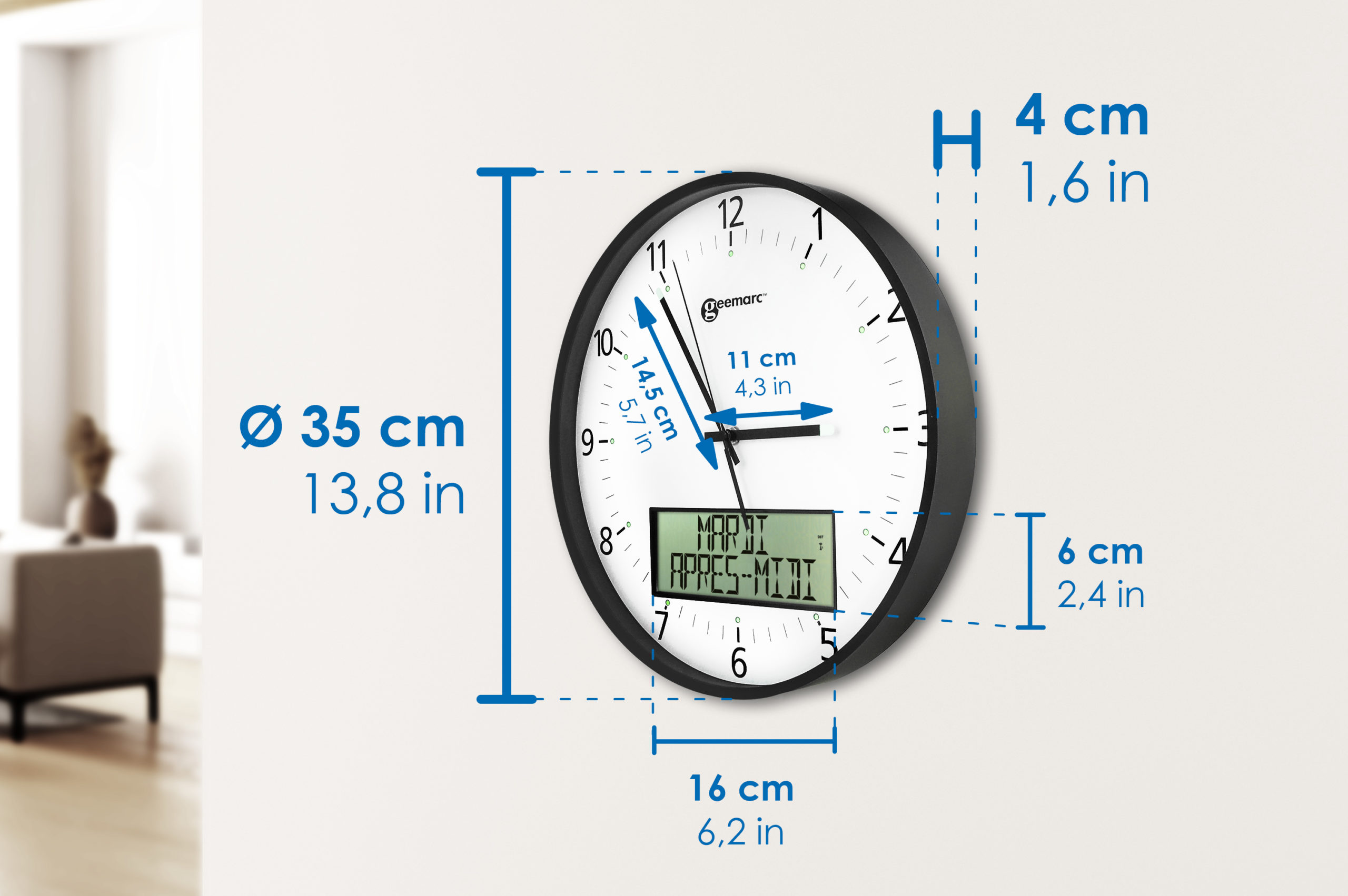 Horloge avec grand afficheur numérique et calendrier